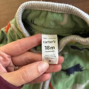 Carter's Boys 18 Month Romper Outfit Fleece One Piece Green Dinosaurs Zip Up