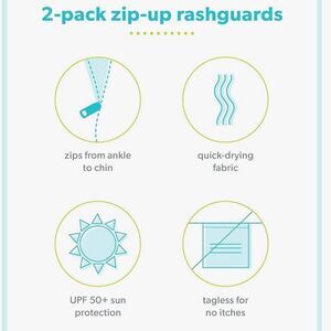 Help keep him covered from sun, sand + salt with these long-sleeve rashguards featuring a full zip front for easy on and off, mock necks, and fun sea characters. A handy 2-pack means more fun in the sun!