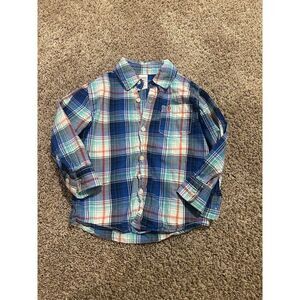 Carters Boys 3T Plaid Button-Up Shirts Lot Long Sleeve Casual Orange