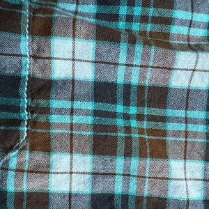 Plaid button up with long sleeves, buttoned cuffs, collared shirt, 100% cotton lightweight material.
