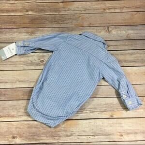 Carter's Boys Bodysuit Size 3 Mo Blue Button Front Up Stripe Woven NEW