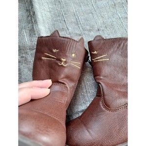 Carters Brown Kitty Cat riding boots. Embroidered cat face. Toddler sz. 5