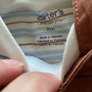 These Carter's overalls in a warm brown hue are made from sturdy cotton, providing a classic and comfortable fit. The timeless bib-front design with adjustable shoulder straps ensures easy movement, making them ideal for daily activities.
