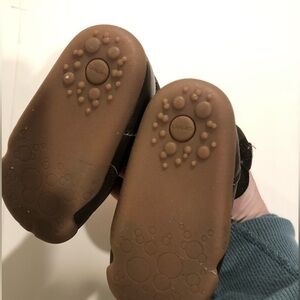 Features Velcro on sides to easily put on/take off boots. Warm cozy liner to keep those tootsie toes warm.