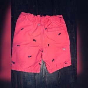 Who says girls can’t like bugs? And who says boys can’t wear pink? These were purchased from the little boys section however, I think they are perfectly unisex. Size 5 in little kids. The coral pink color is perfect for summer. Embroidered bugs all over the front and back in tones of navy and a silvery gray. Good condition. Inseam is 4”
