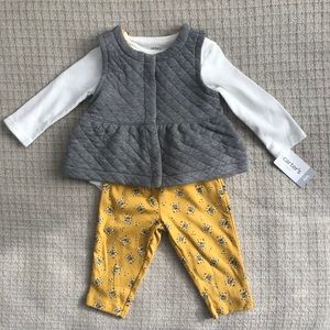 Carter’s bundle, size 6 months. Includes a button up one piece pram, two piece “Magical Like Mommy” outfit, three piece outfit with vest and long sleeve onesie, and snap up sleep and play.