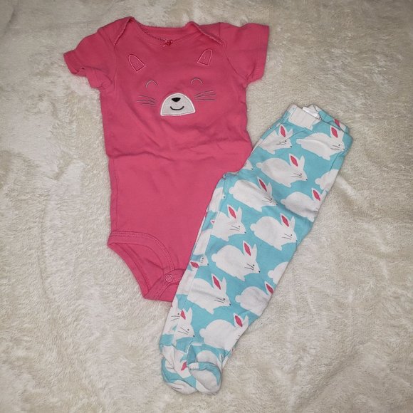Girl's 9m Carter's Footed Bunny Pants and Onesie Set! Perfect for Easter!