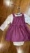 Adorable baby outfit featuring a cherry print top and a charming purple bottom. Perfect for any occasion. Size 6 months