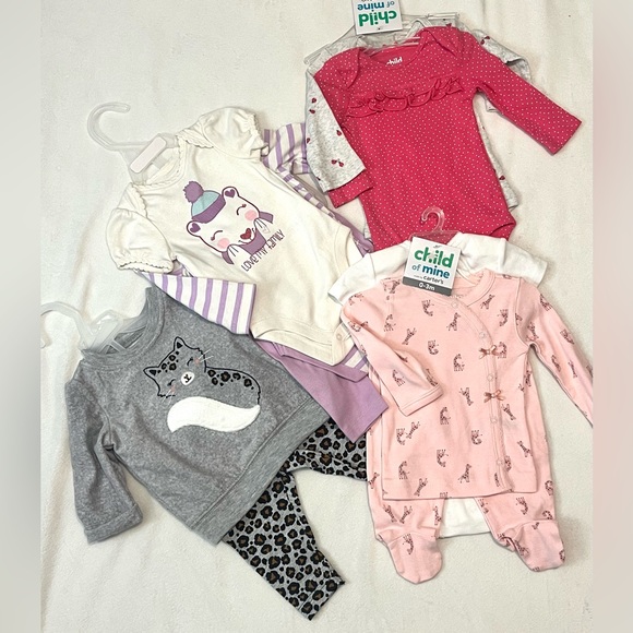 Carter’s Child of Mine & Children’s Place LOT of 0-3 MONTHS Outfits & Bodysuits