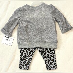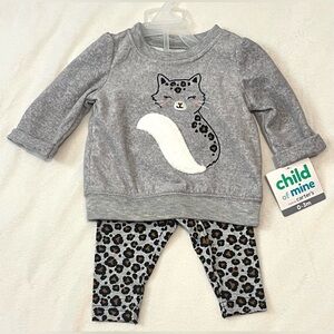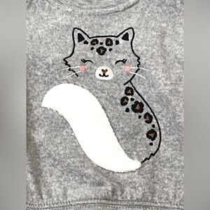 Gray & cheetah print fleece sweatshirt with kitten and cheetah print pants.