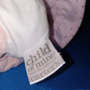 Oh so cute! This Carter’s Child of Mine rattle security doll is 9” tall with brown hair and a pink dress adorned with brown dots and bows. She is missing one flower in her pigtail. Has an embroidered face add a charming touch. See photos for condition.