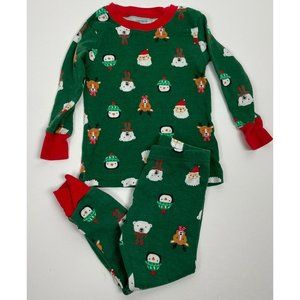 Carter's Christmas Pajamas Toddler Boy Green Penguin Reindeer Santa two-piece cotton set.
