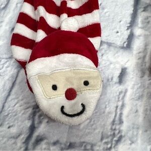 Super adorable size 9 months Carter’s two sleepers. One sleeper is a velour Santa outfit . The other is a reindeer cotton outfit. Check out those cute feet. These are in gently preowned condition and comes from a smoke free home. These will be mailed same day