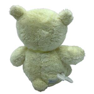 Adorable wind-up musical teddy bear designed for a comforting and soothing experience. Features soft cream plush material and a yellow ribbon accent.
