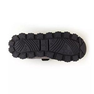 Faux lace-up front with hook and loop closure for easy on-and-off