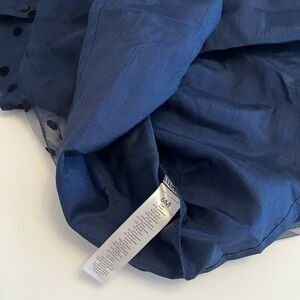 Stylish & adorable Carter’s Special Occasions navy dress with velvet polka dots, tulle, liner, button back, & beautiful satin bow detail. So pretty and ideal for formal events and/or holidays!
