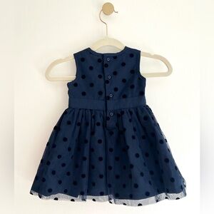 Carter's Elegant Navy Formal Dress w/Velvet Polka Dots & Bow Baby Girl 6 Months
