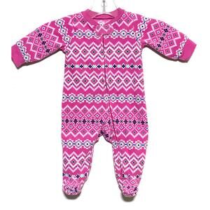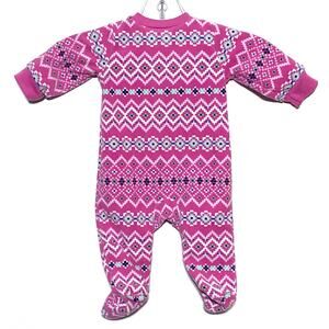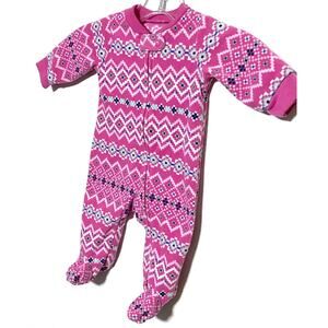 Carters FairIsle Pink One Piece Fleece Footie Zip Pajamas Girls Baby 3M 3 Months