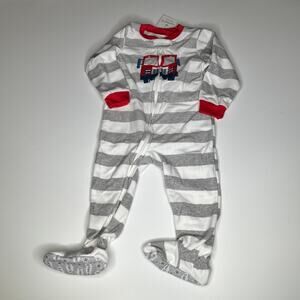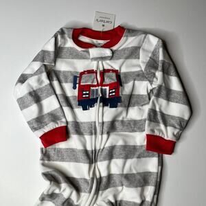 Carter's fleece pajamas. One-piece, zip-up. Gray and white stripes with red fire truck. Warm pj's for cool winter nights. New with tags. Size 2T.