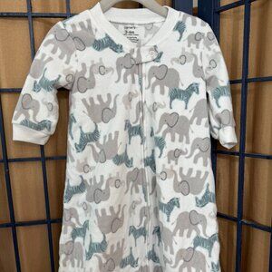 Carters Fleece Sleep Sack 3 6 Months Elephant Zebra Print Zip Up