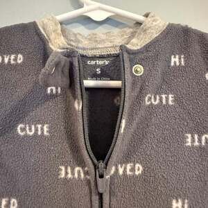 Carter’s Fleece Sleep Sack with Sleeves – Gray “Hi, Cute, Loved” Print