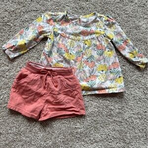Carter's Floral long sleeve Top with coral elastic shorts size 18 months