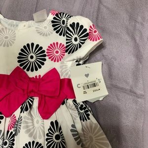This dress is new with tags. Beautiful gray, black, and pink flower pattern on white background. Size 9 months. Brand is Carter's.