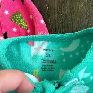 Carters Footed Fleece Pajamas.  This listing is for 3 pairs of pajamas.  All are a size 3T.  All are in great condition! Very soft and warm pajamas!
