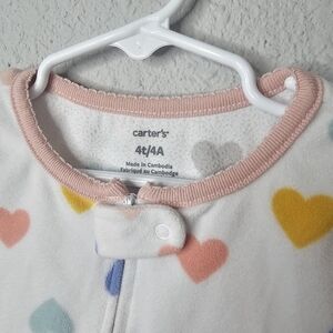 Carter's Footed Pajama Toddler 4T White Pink Heart Zip Up Long Sleeve Clean Girl
