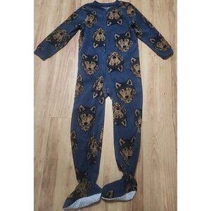 Carters Full Zip Up Footed Fleece Blue With Wolf All Over Graphic Pajamas Size 7