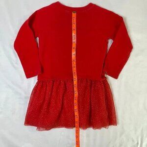 Carter's Girls 3T Red Holiday Dress Sparkly Tulle Mesh Skirt Long Sleeves