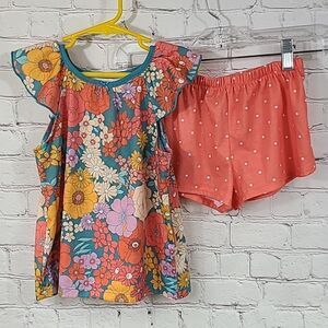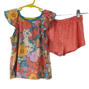 Carter's Girls 5T/5 Pajama Set Coral Floral Print Top & Shorts Little Girl PJs