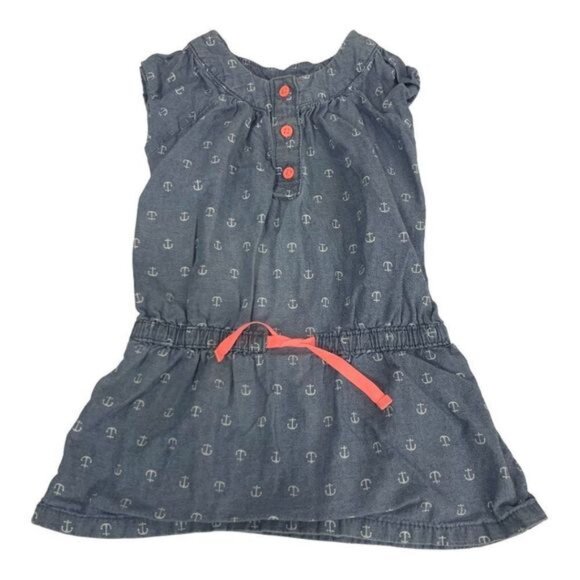 This Carter's denim dress combines playful design with practical wear. Featuring anchor prints and a pop of color with vibrant buttons, it offers both style and comfort for young girls, making it an appealing choice for casual outings.