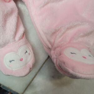 Baby carter's Fleece snow suit, pink zip up, with hood and feet, little owl on it. Excellent condition, worn once.
