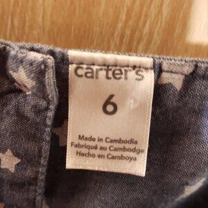 Carter’s girl’s blue white star print shirred tiered sleeveless dress 6. Good condition. Measurements are: 27” from shoulder to hem, and 11 ½" from armpit to armpit.