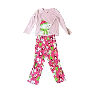 Carters Girls Christmas Pajama Set Size 7 Polar Bear Pink Santa Reindeer Holiday