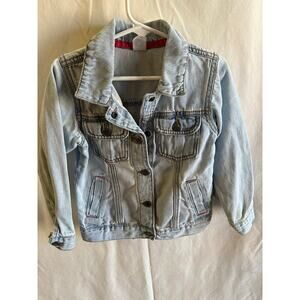 This Carter’s denim jacket is a stylish and versatile piece, perfect for layering during cooler weather. Made from durable light-wash denim, it features classic details such as a button-front closure, two chest pockets with button flaps, and two side pockets. The jacket is accented with pink stitching and a decorative pink ribbon lining along the neckline for added charm. Designed for comfort and durability, this jacket is ideal for casual outings or everyday wear.