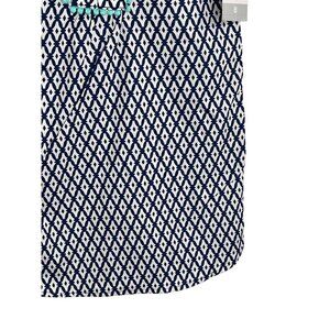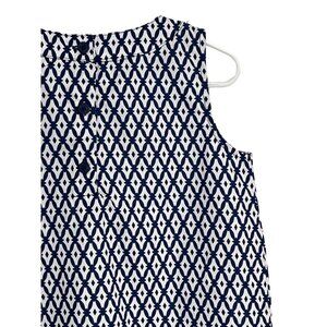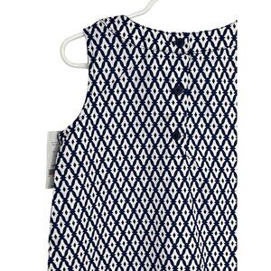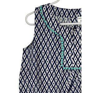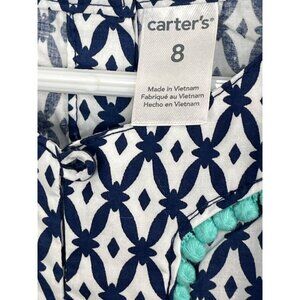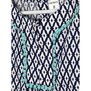 This Carter's A-line dress, size 8, for girls is a stylish choice for casual wear. It's blue and white, with a fun geometric pattern. Made from lightweight cotton, it's perfect for warm weather and is sleeveless for added comfort.