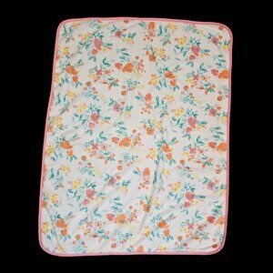 Carters Girls Floral Baby Blanket White Pink Sherpa Back 30 X 39