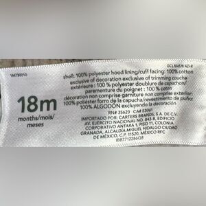 Carter’s Girls Kids Gray Hooded Buffalo Check Fleece Peplum Pea Coat. 18 Months.