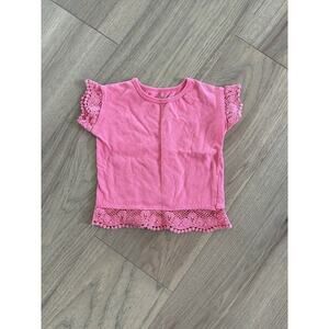 Carters Girls Pink Crochet Trim Knit Cotton Short Sleeve T Shirt Size 12M