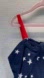 Features a navy blue base with white star print, red straps, and a cute bow detail in the back.