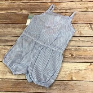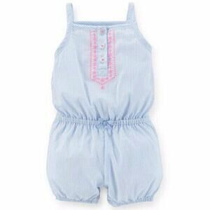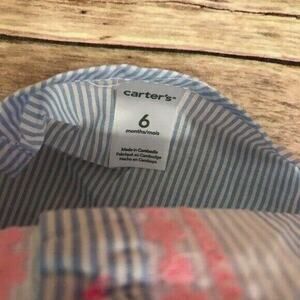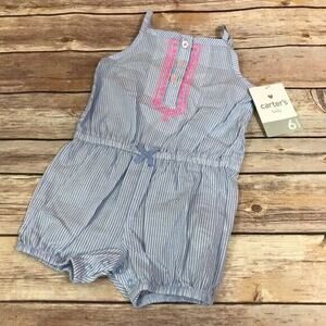 Carter's Girls Romper Size 6 Months Blue White Ticking Stripe Neon Pink NEW
