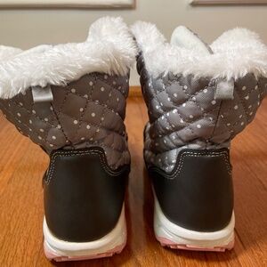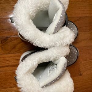 Carters Girls Snow Boots Size 12 Gray/White/Pink Polka Dot Fur Trim