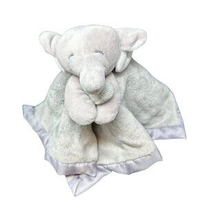 Carters Gray Elephant Security Blanket Satin Trim 14in Baby Lovey Plush Blankie