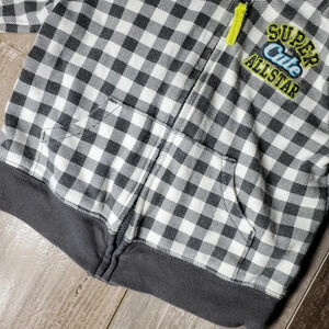Carter's Gray and White Checkered Hooded Jacket Full Zip Baby Boy Size 12m EUC