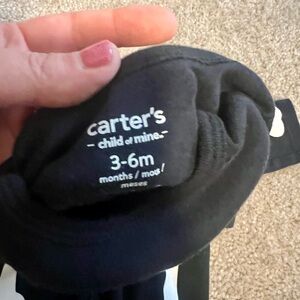 Fun skeleton costume by Carter's. Black outfit with white bones and orange accents. Perfect for Halloween festivities.