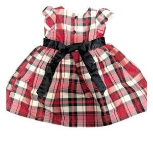 Size 12 Months Has a few black buttons on the back with a black satin bow Fully lined