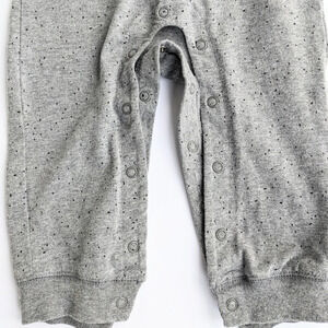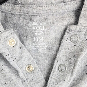 Carter's "Just For You" size 18M, gray, black speckled, lion character romper with hoodie and snap closure at neck and bottom. No feet enclosure, stretchy hem at ankles and wrist. Excellent Condition! (Never Worn). 60% Cotton/40% Polyester.