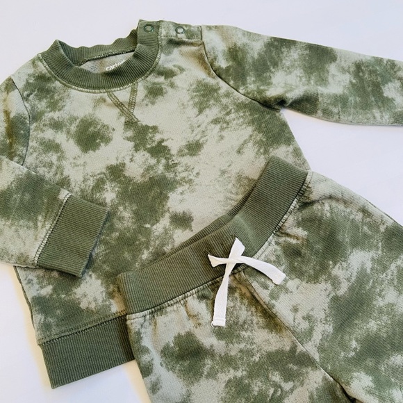 Carter’s cozy green tie dye infant set with an elastic waist.